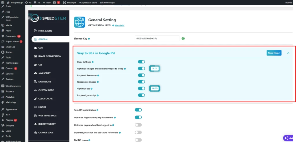 Now that your setup is complete, scroll to the section titled ‘Way to 90+ in Google PSI.’ Click it, and six powerful optimization options will appear to help your site achieve top scores in PageSpeed Insights with ease.