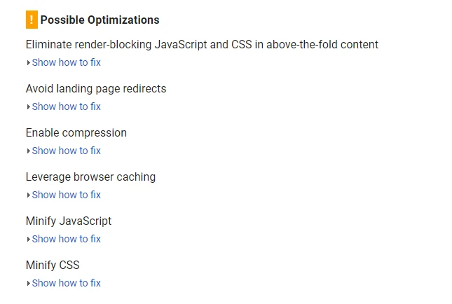 You can start by fixing the items in the Opportunities section, as they often bring the biggest performance gains with minimal effort. Each suggestion comes with an estimated time savings and a clickable dropdown for in-depth information and related resources. Here are some typical suggestions: