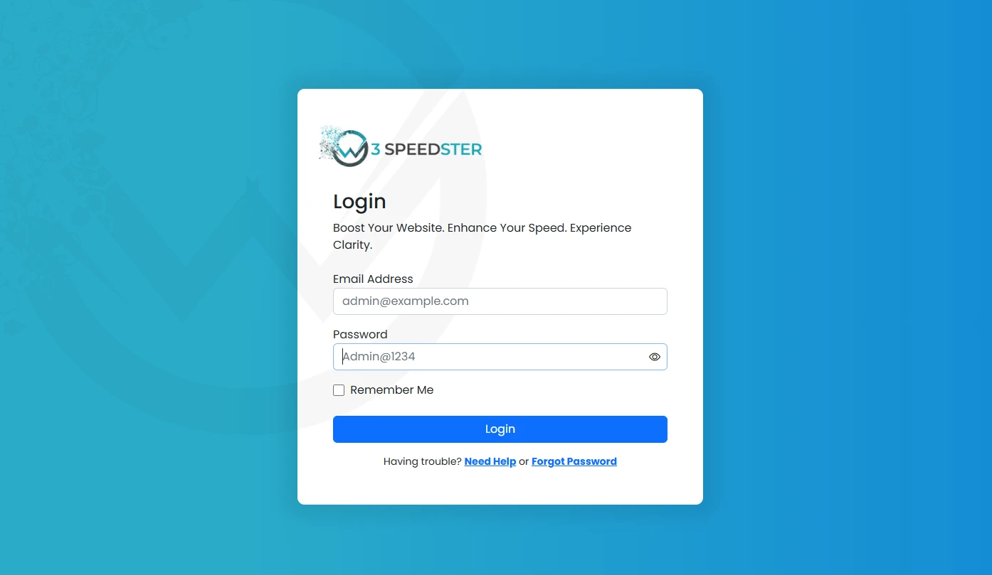 Once W3Speedster is successfully installed in your Core PHP project, follow the steps below to access and configure the admin panel securely.