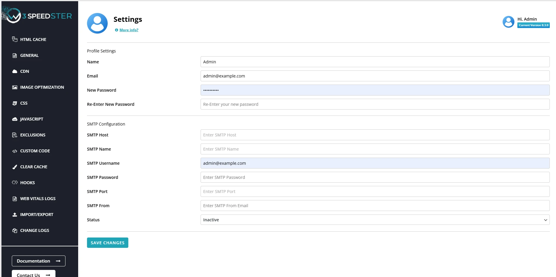 - Navigate to the SMTP Configuration section under settings in the admin panel.